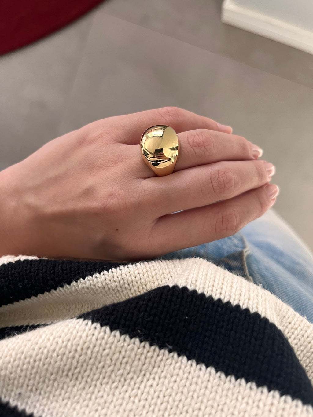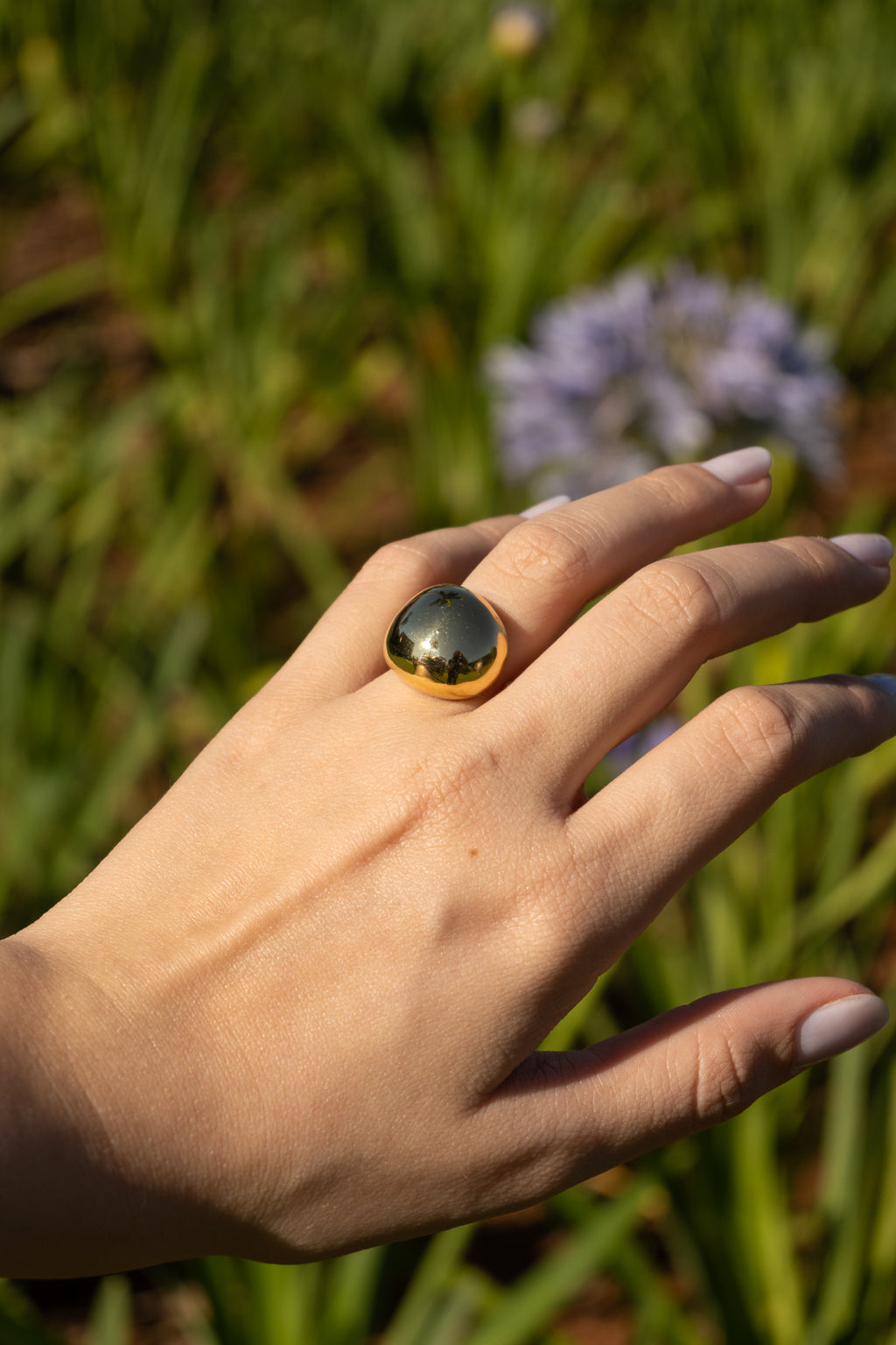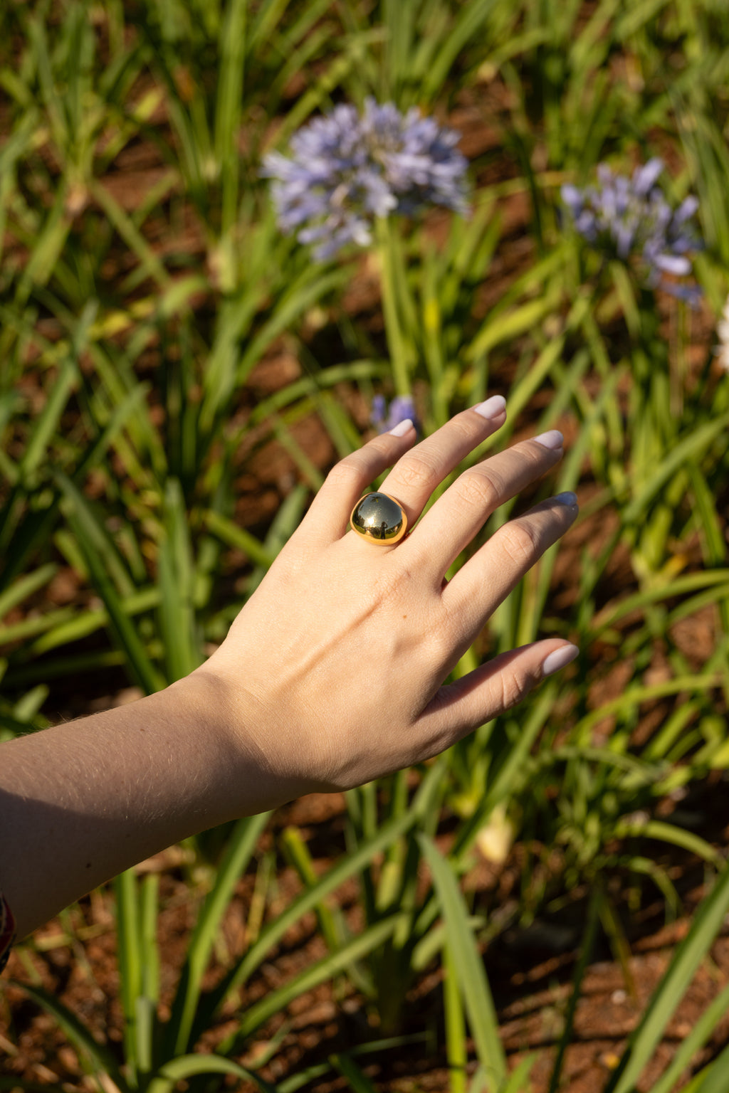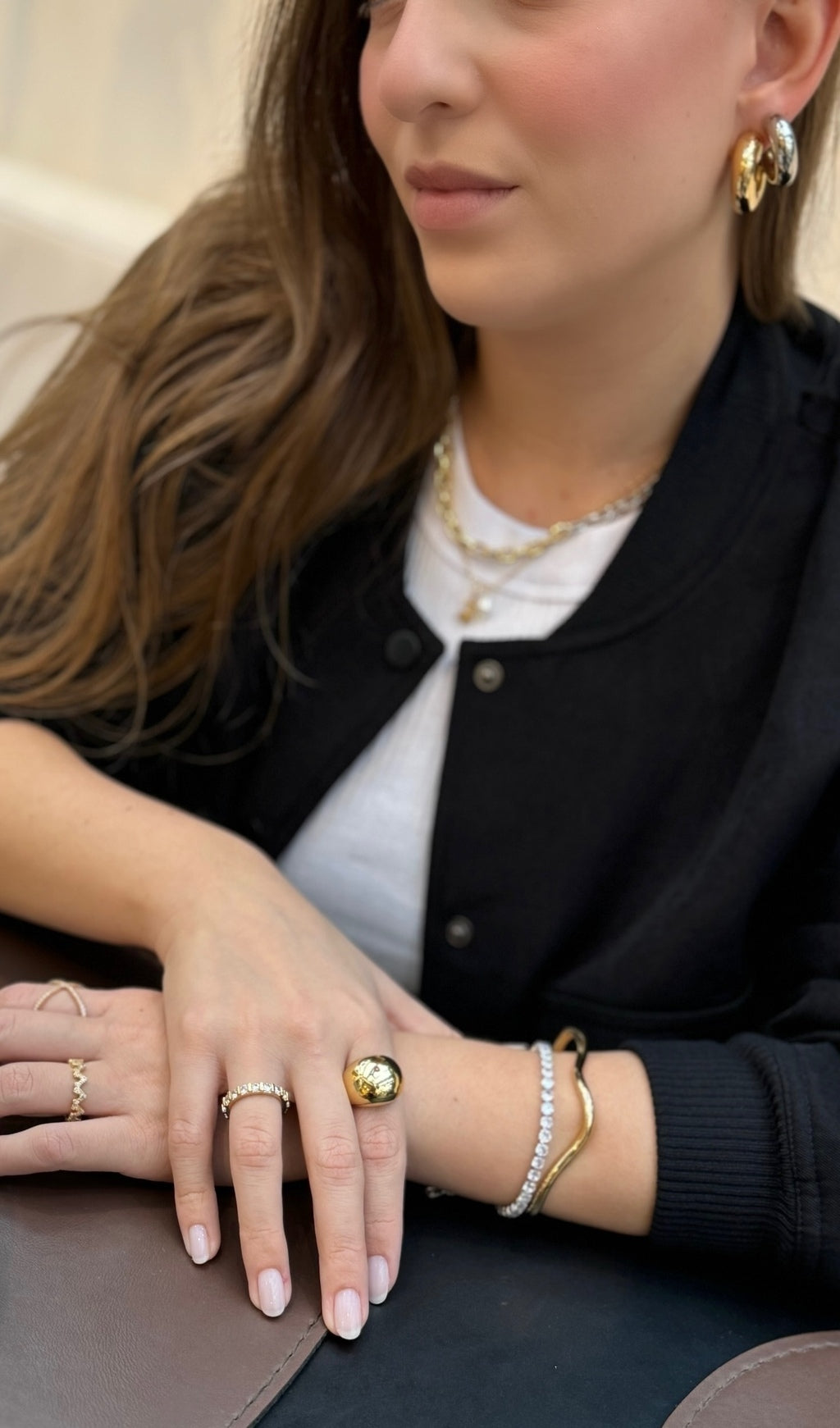 Transforme seu look com este deslumbrante anel maximalista dourado liso. Com seu design elegante e sofisticado, ele é ajustável para garantir o encaixe perfeito em qualquer dedo. Seu acabamento dourado brilhante é a escolha ideal para quem busca um acessório fashion e versátil que pode ser usado em qualquer ocasião, seja para um evento especial ou para dar um toque de glamour ao seu dia a dia.