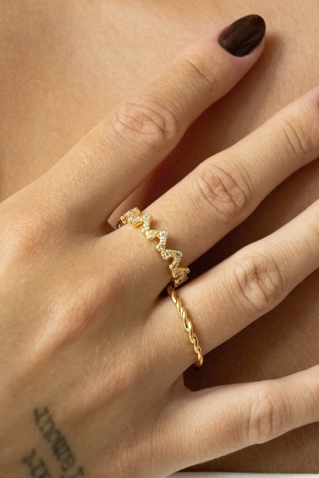 Apresentamos nosso encantador Anel Ajustável, uma peça versátil que se adapta a todos os tamanhos de dedo, apresentando um elegante acabamento em nó torcido. Este anel delicado é ideal para complementar o seu mix de anéis, adicionando uma dose extra de elegância e estilo às suas mãos.