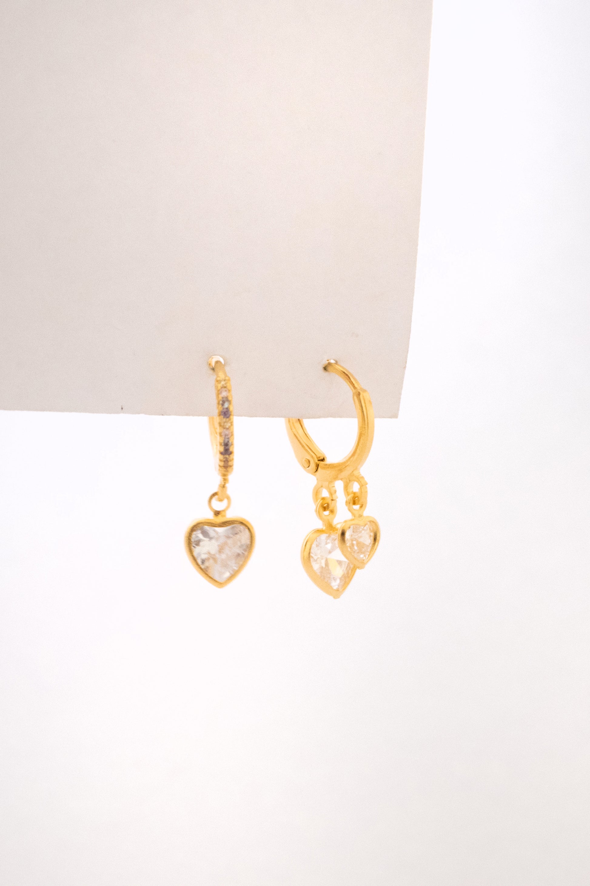 Argola com dois pingentes de zircônia em formato de coração. Uma peça que combina brilho e delicadeza na medida certa, perfeita para adicionar um toque romântico e sofisticado ao look e ideal para fazer mix de argolas com muito estilo.