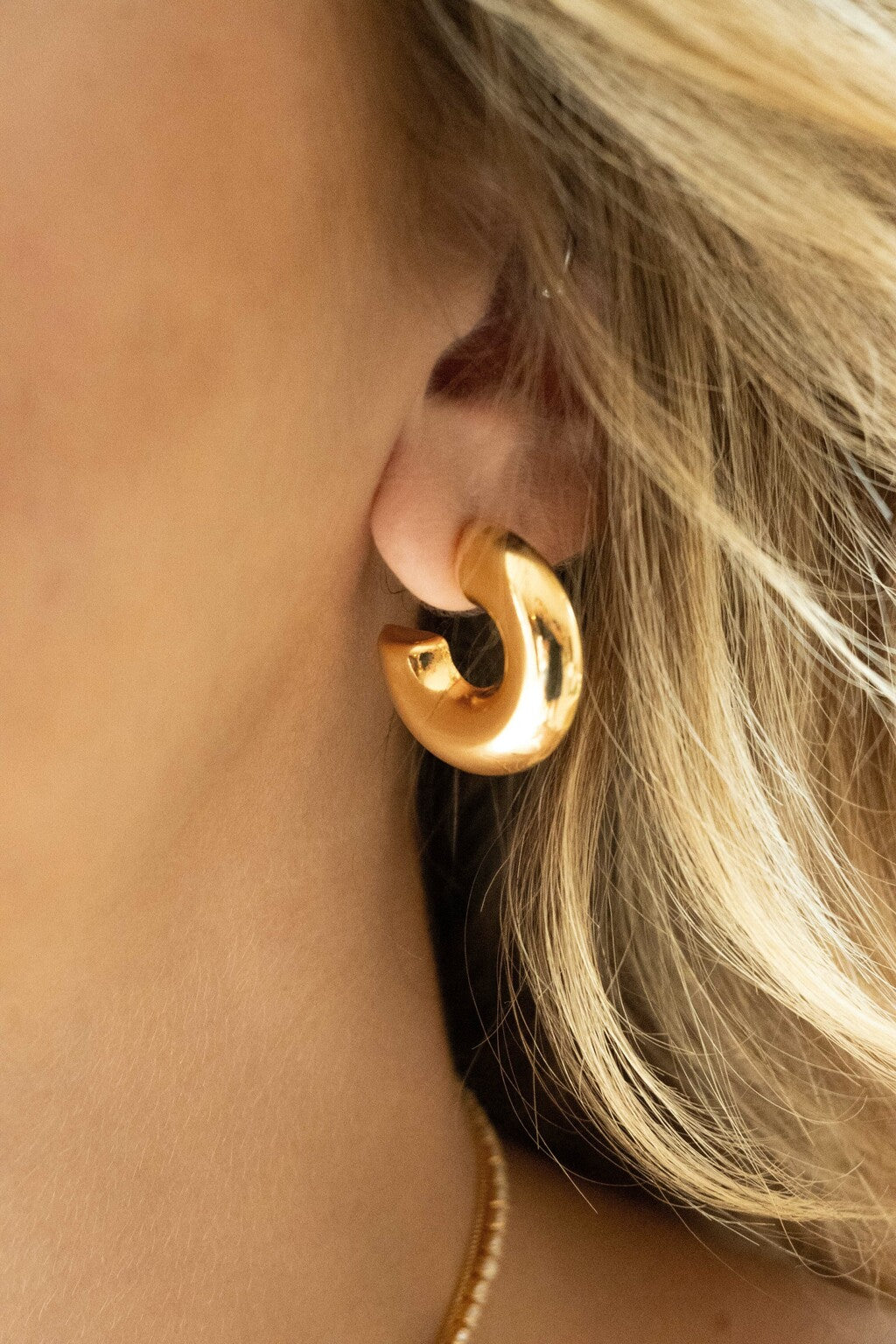 Desperte sua elegância com nossa argola robusta, uma peça banhada a ouro 18k ou ródio branco. Com dimensões de 2cm de altura por 2cm de largura, esta argola é perfeita para um mix de acessórios ou para um visual mais discreto e refinado quando usada sozinha.