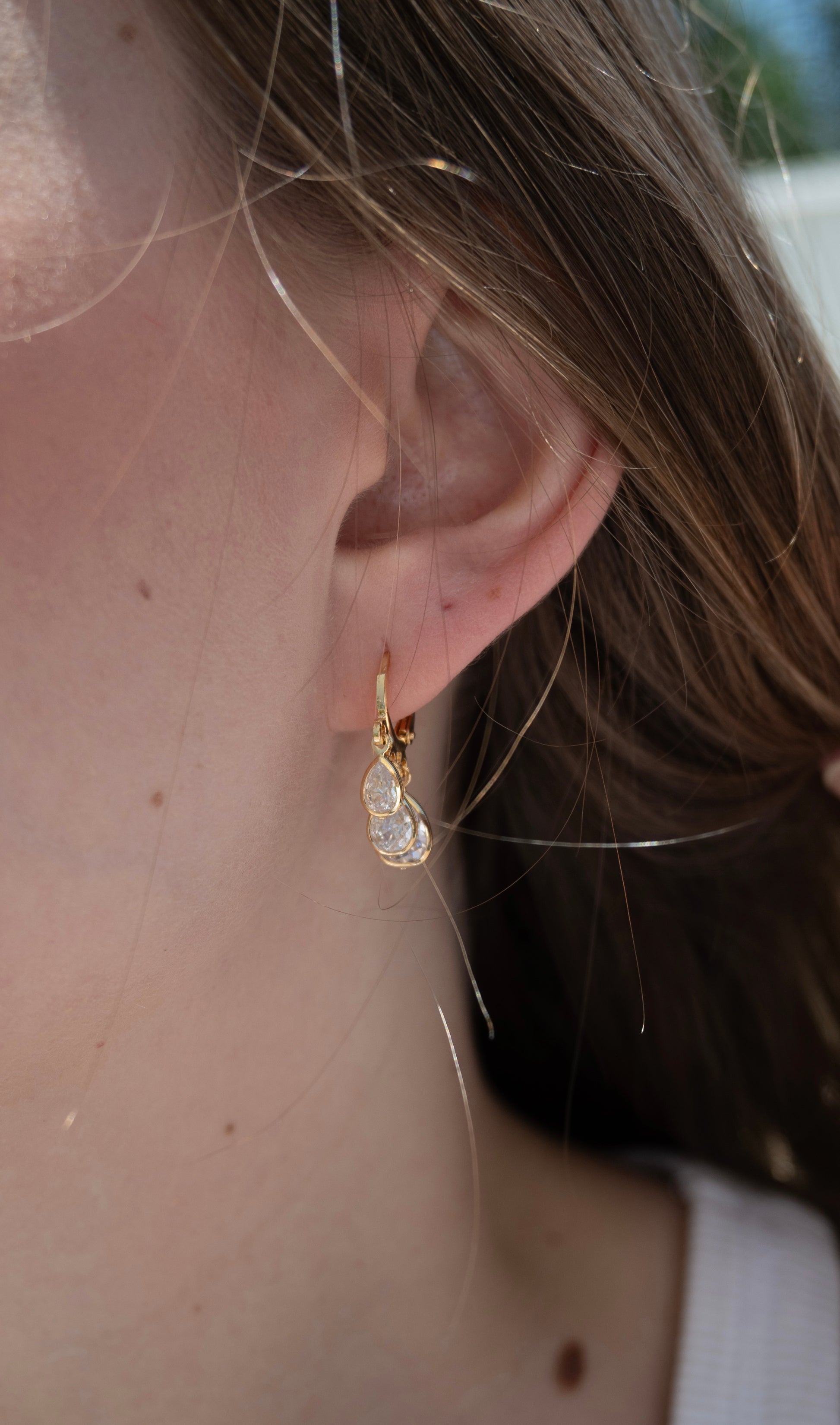 Mini argola com 3 pingentes de gotas em zircônia. Uma peça confortável, estilosa e cheia de brilho, perfeita para montar mixes modernos ou para usar sozinha, trazendo leveza e elegância ao look.