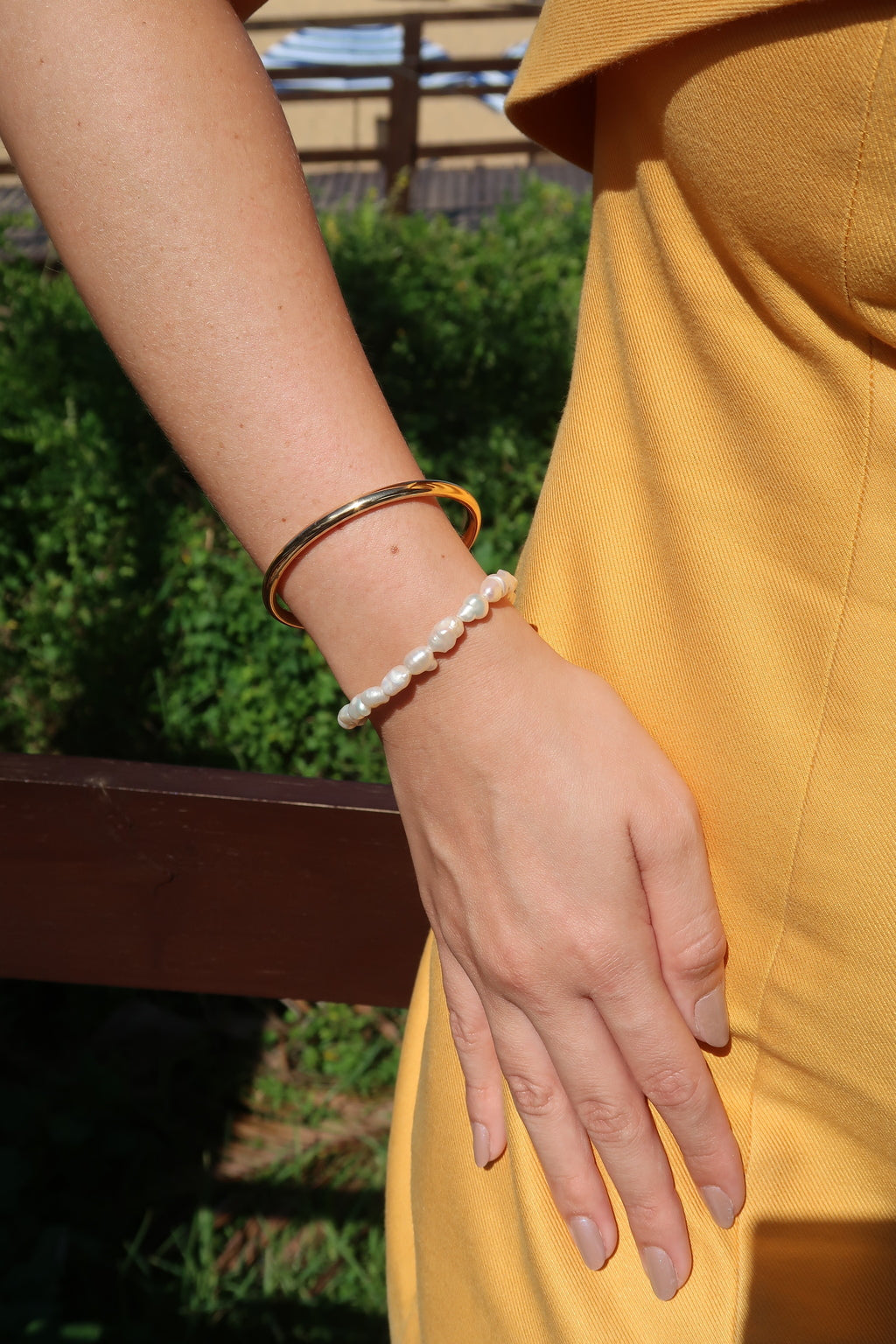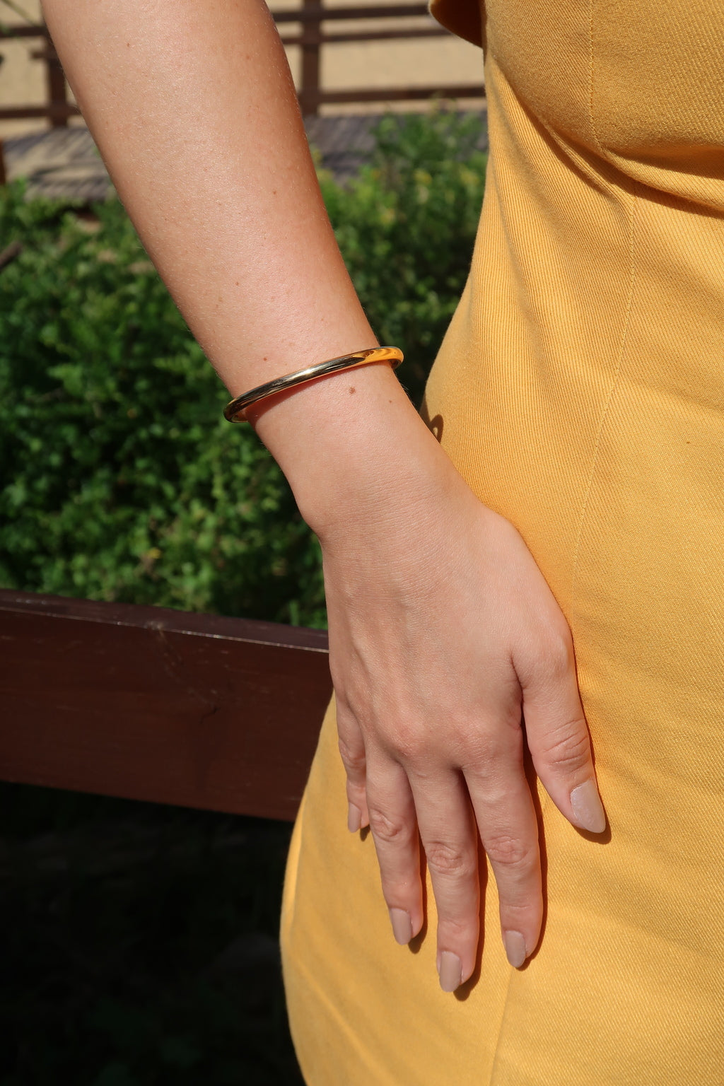 Elegante e atemporal, este bracelete liso e fino é a escolha perfeita para quem busca um acessório versátil e sofisticado. Seu design ajustável permite que seja usado em diferentes alturas do pulso, garantindo conforto e segurança para todos os tamanhos. Ideal para compor looks minimalistas quando usado sozinho ou para criar combinações modernas com outras pulseiras. Uma peça clássica que nunca sai de moda!