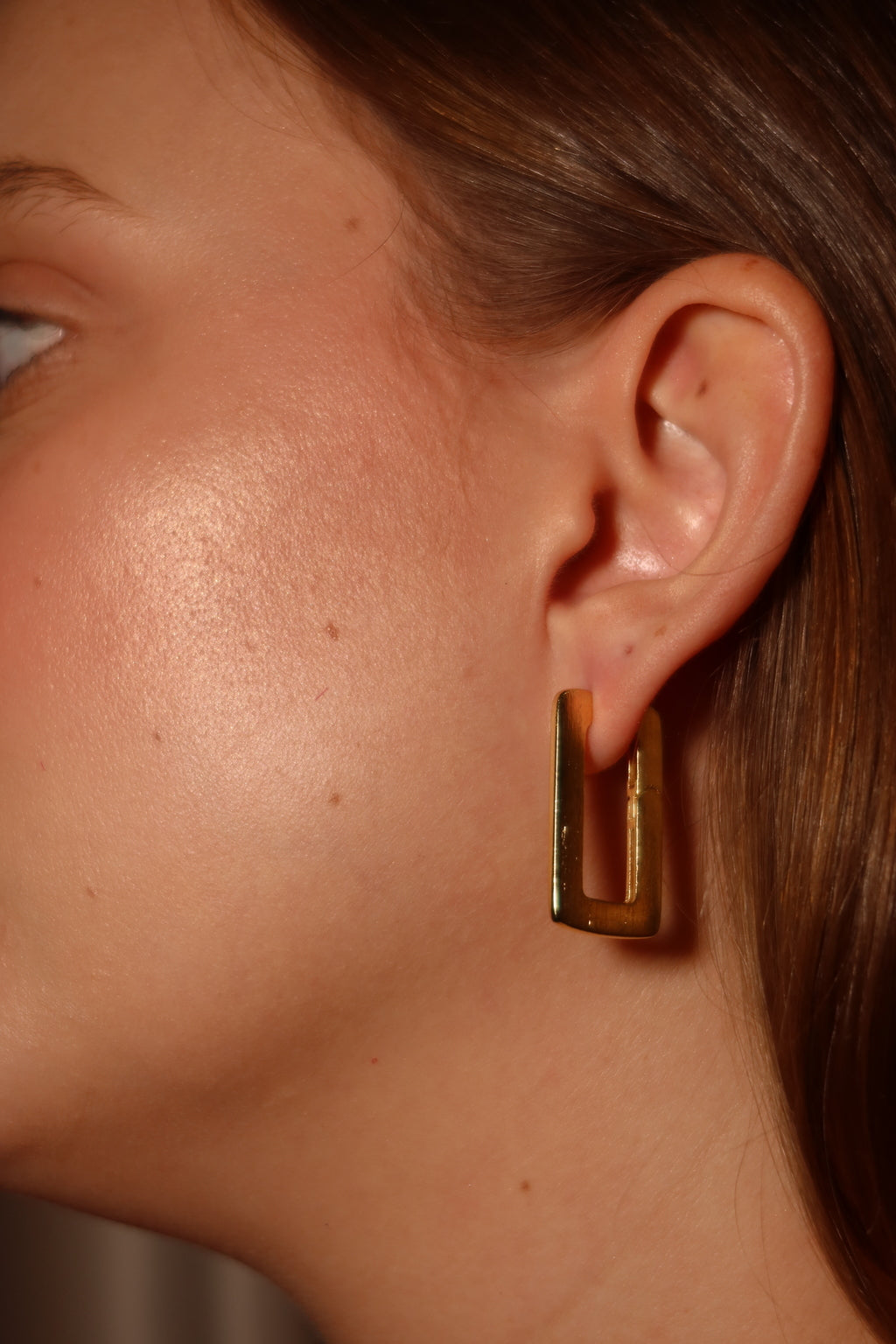 Apresentamos nosso Brinco Estela, uma Argola Retangular que redefine o conceito de elegância, banhada em ouro 18k e adornada com uma textura fosca que adiciona um toque de sofisticação ao seu visual.