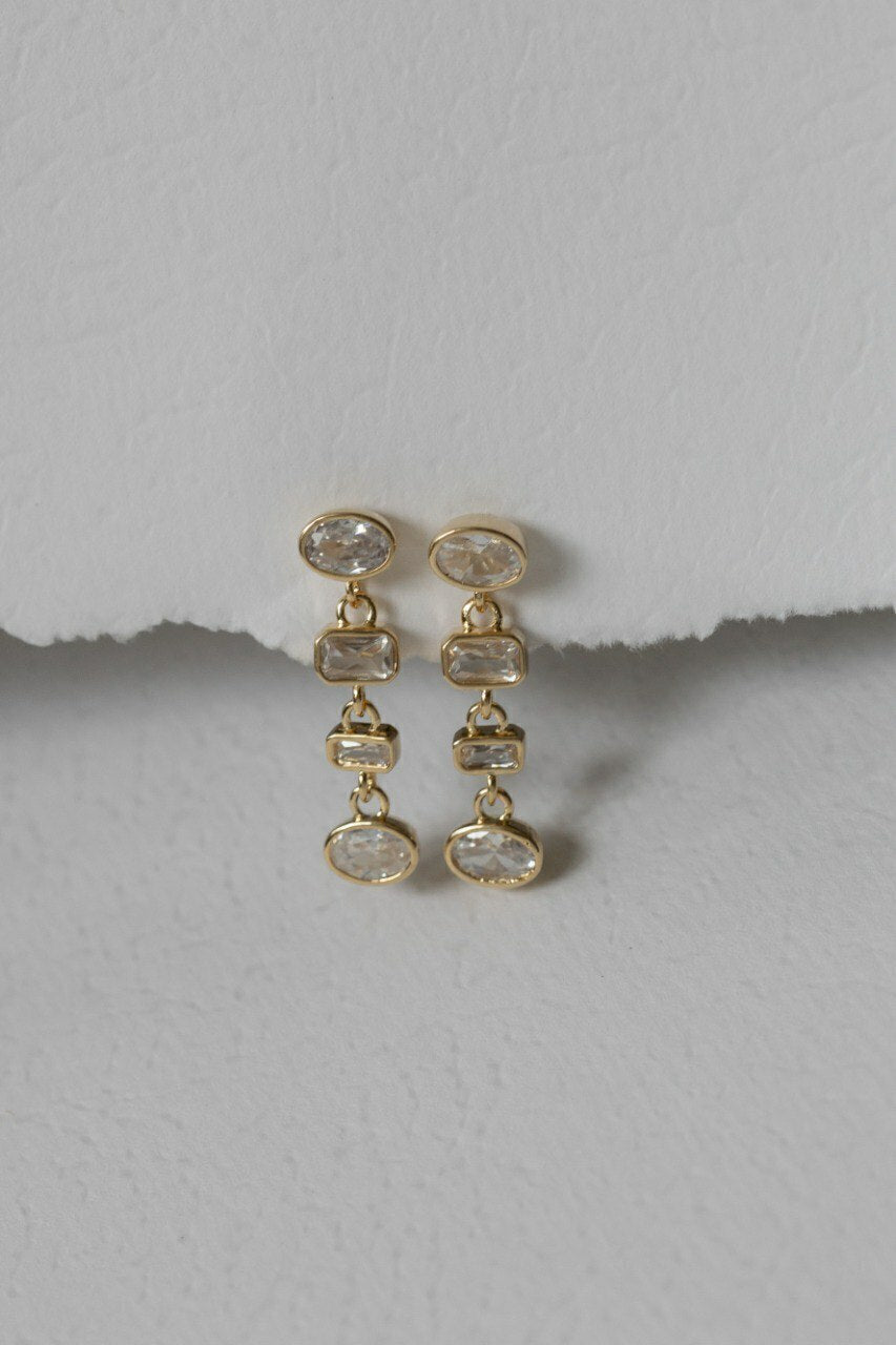 Com um caimento fluido e elegante, este brinco banhado a ouro 18K é cravejado com zircônias brilhantes, garantindo um toque sofisticado e moderno. Seu design delicado e atemporal torna a peça perfeita para diversas ocasiões, do dia a dia a eventos especiais. Comprimento: 2,5 cm.