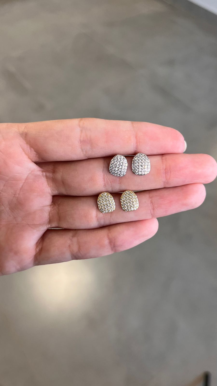 Com design minimalista e acabamento refinado, este brinco pequeno em formato arredondado é inteiramente cravejado em zircônias que proporcionam um brilho único e sofisticado, Perfeita para ser usada sozinha ou combinada com outros brincos em uma composição de dois ou mais furos. O mix ideal entre delicadeza e impacto.