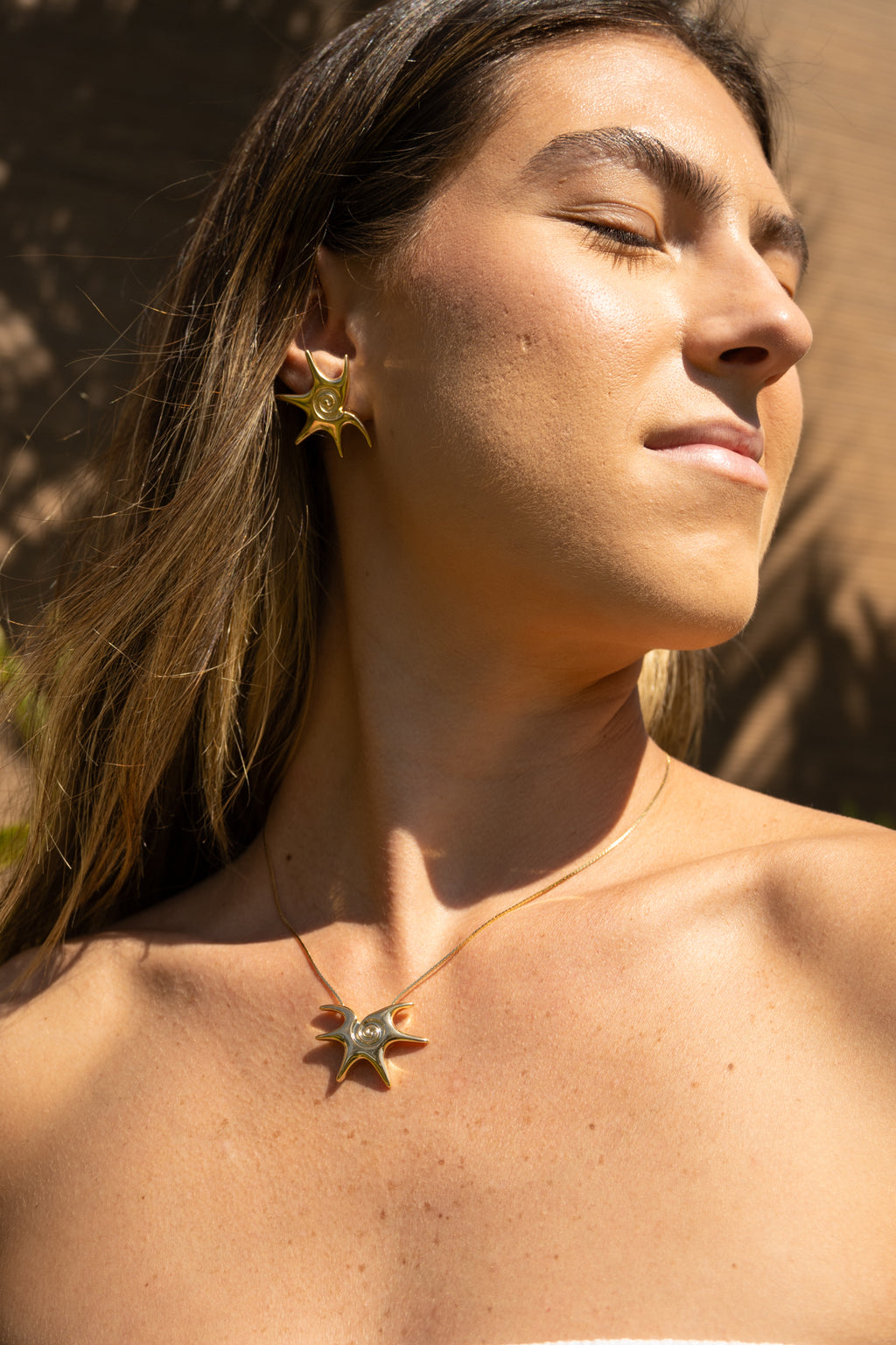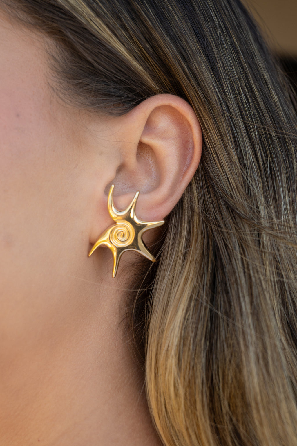 Assim como o colar, o brinco Soleil possui um design de sol em formato abstrato, perfeito para quem busca uma peça elegante e com a cara do verão. Com seu toque marcante e moderno, é ideal para quem gosta de composições sofisticadas e cheias de personalidade. Um brinco versátil que complementa e valoriza qualquer look.