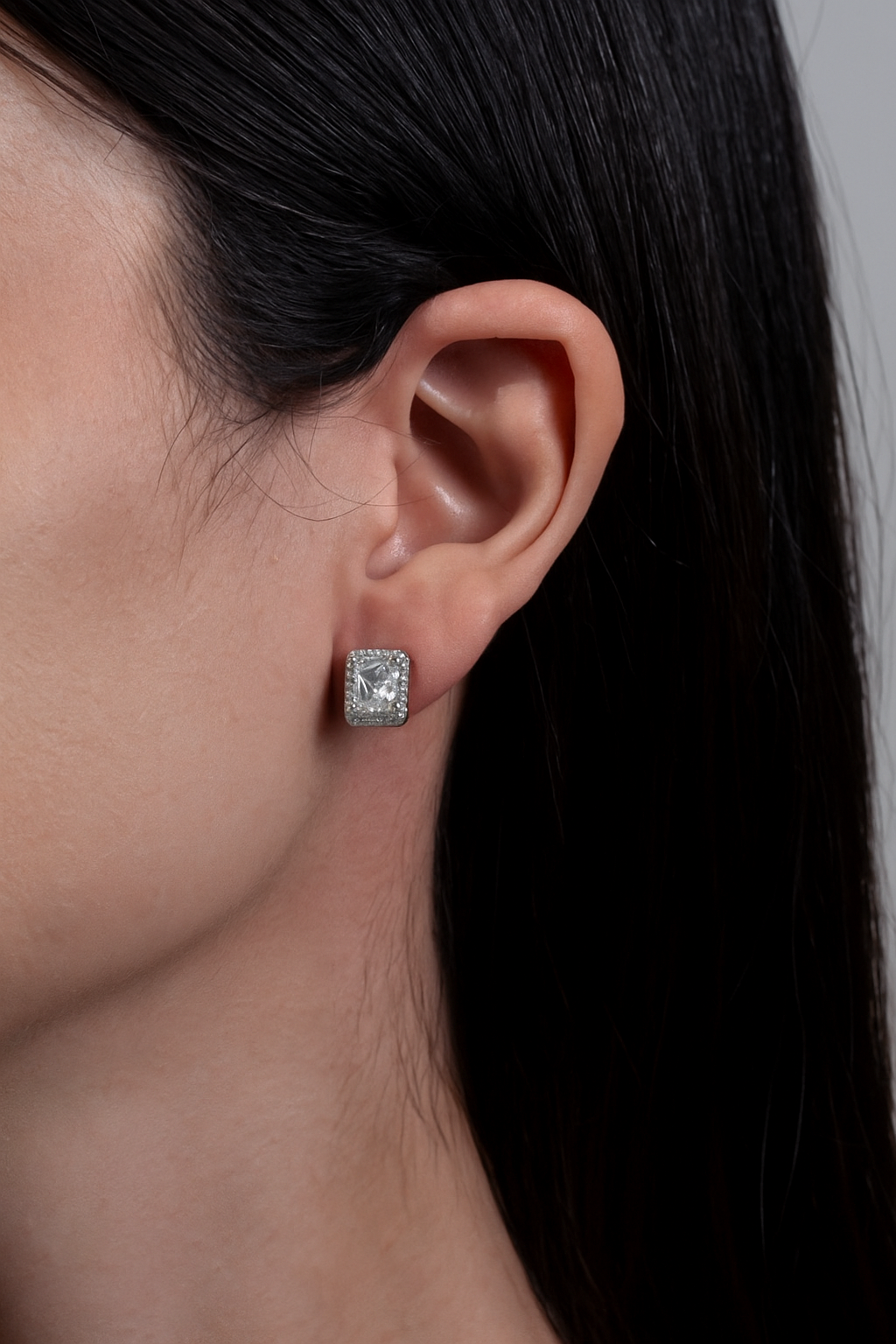 Brinco elegante em formato quadrado, com pedra central retangular de zircônia, rodeada por delicado contorno de micro zircônias cravejadas que proporcionam ainda mais brilho e sofisticação. Produzido em banho prateado, é uma peça versátil que combina com diferentes estilos e ocasiões, do dia a dia a eventos especiais. Um acessório atemporal, ideal para quem busca modernidade e elegância em um único design.
