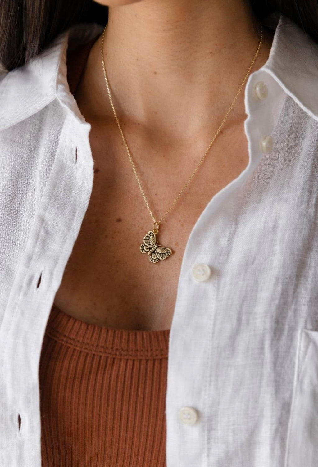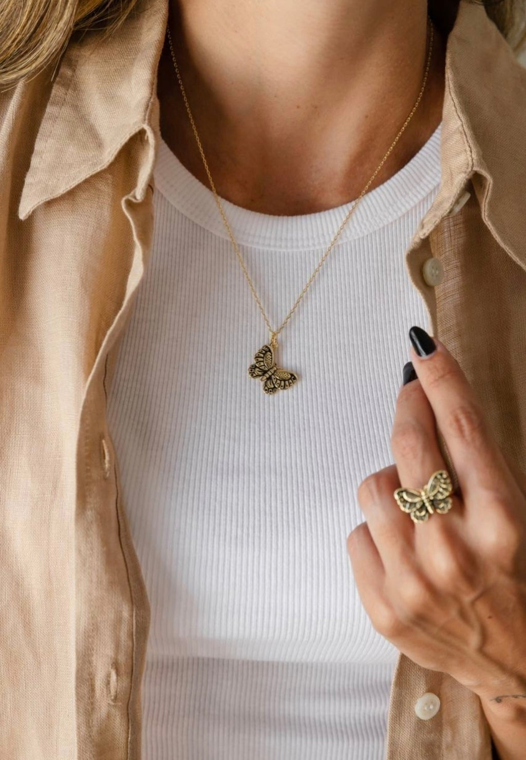 Descubra a elegância e delicadeza do nosso colar com pingente de borboleta, meticulosamente banhado a ouro 18K. Esta peça única e feminina é perfeita para adicionar um toque de sofisticação e charme ao seu visual. Ideal para ocasiões especiais ou para dar um brilho extra ao seu dia a dia, este colar é uma expressão de estilo e beleza atemporal.