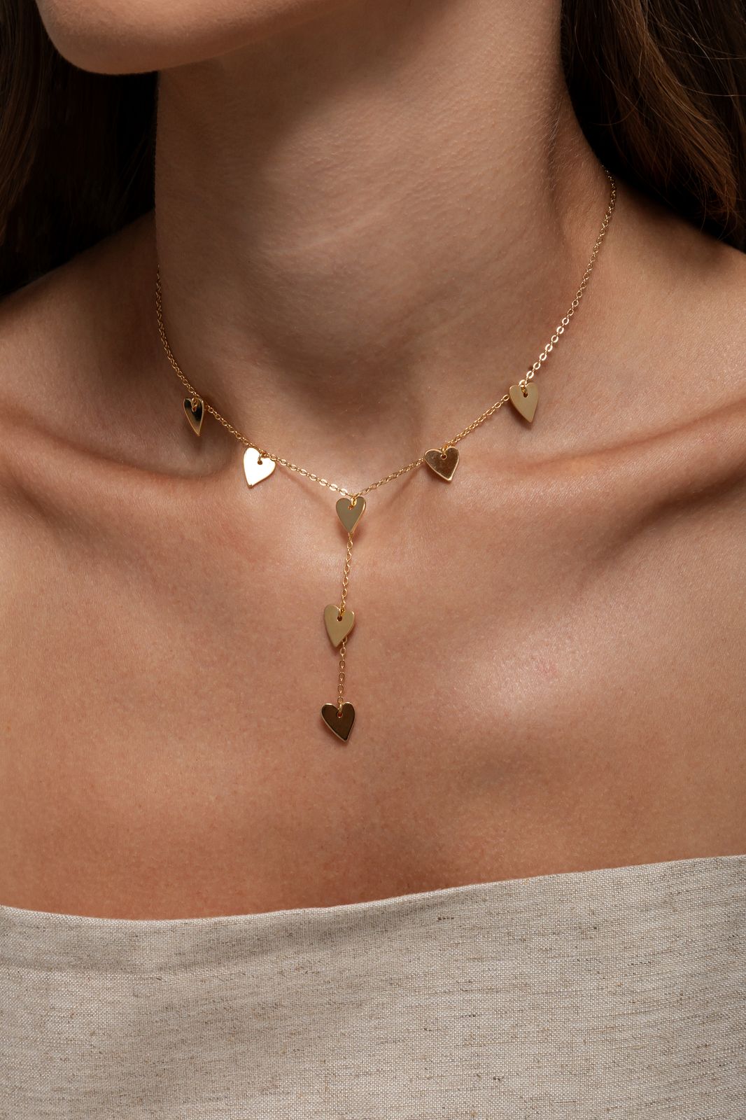 Uma peça moderna e versátil que traz um toque de romantismo e sofisticação ao seu visual. Com seu design estilo gravatinha, ele preenche o colo de forma elegante, proporcionando um efeito alongado e atual, perfeito para complementar desde looks casuais até produções mais elaboradas. Seu formato de corações adiciona charme e feminilidade, tornando-o ideal para quem busca um acessório delicado, mas com presença.