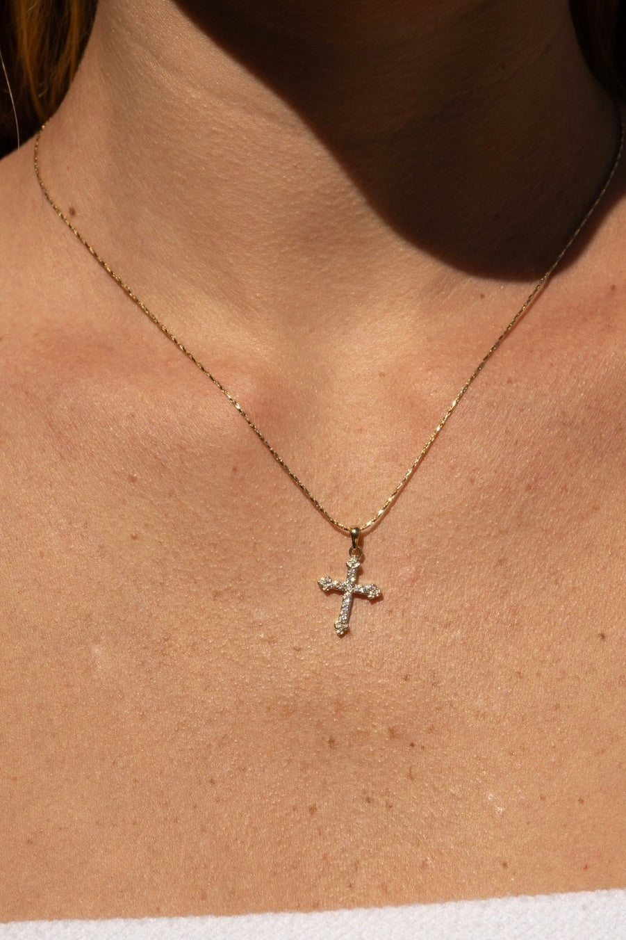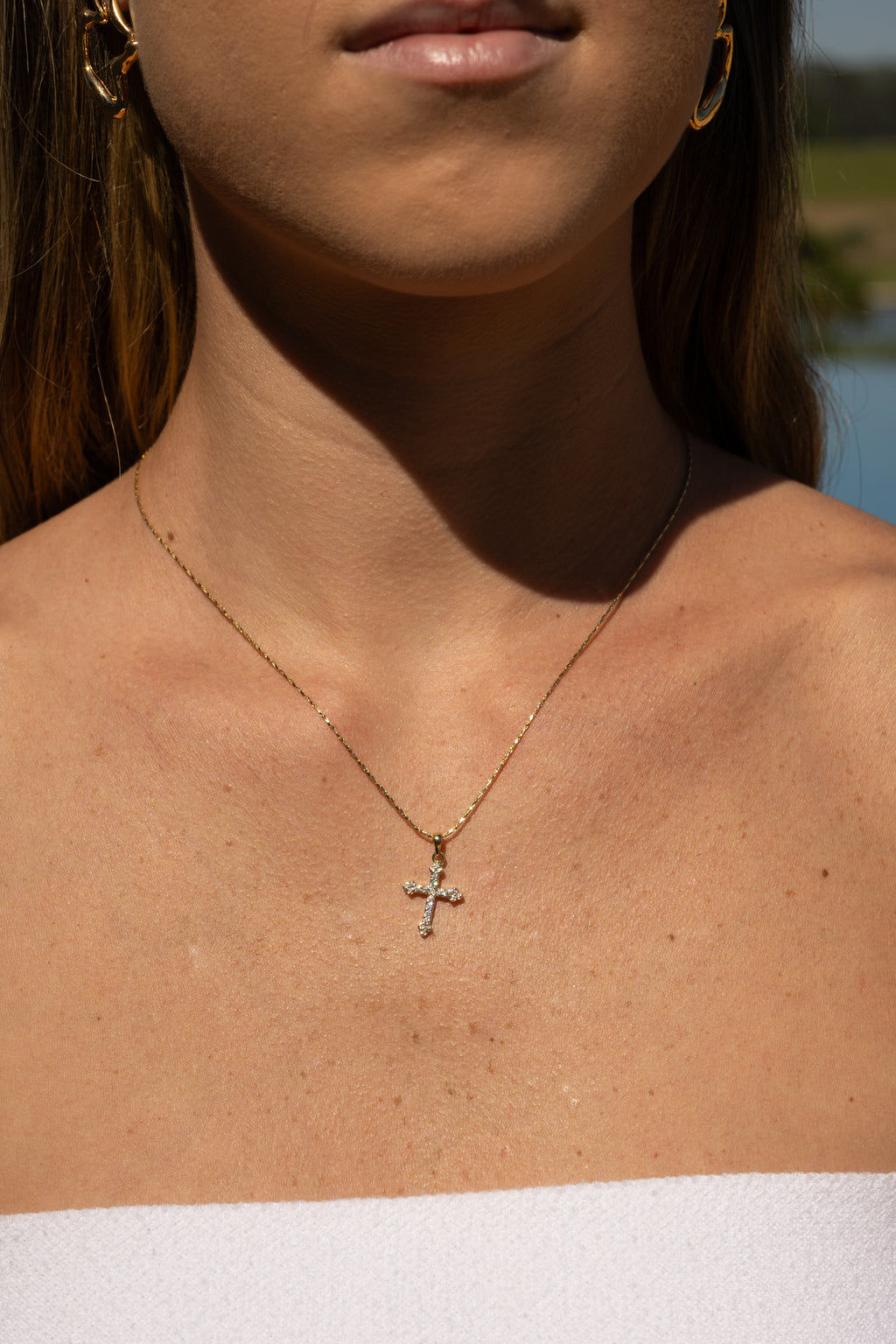 Colar com pingente de cruz cravejado, uma peça moderna e sofisticada, ideal para compor mixes de colares. Com seu pingente moderno, traz um comprimento diferenciado que valoriza o colo e complementa qualquer produção com elegância. Uma ótima opção para presentear alguém especial.