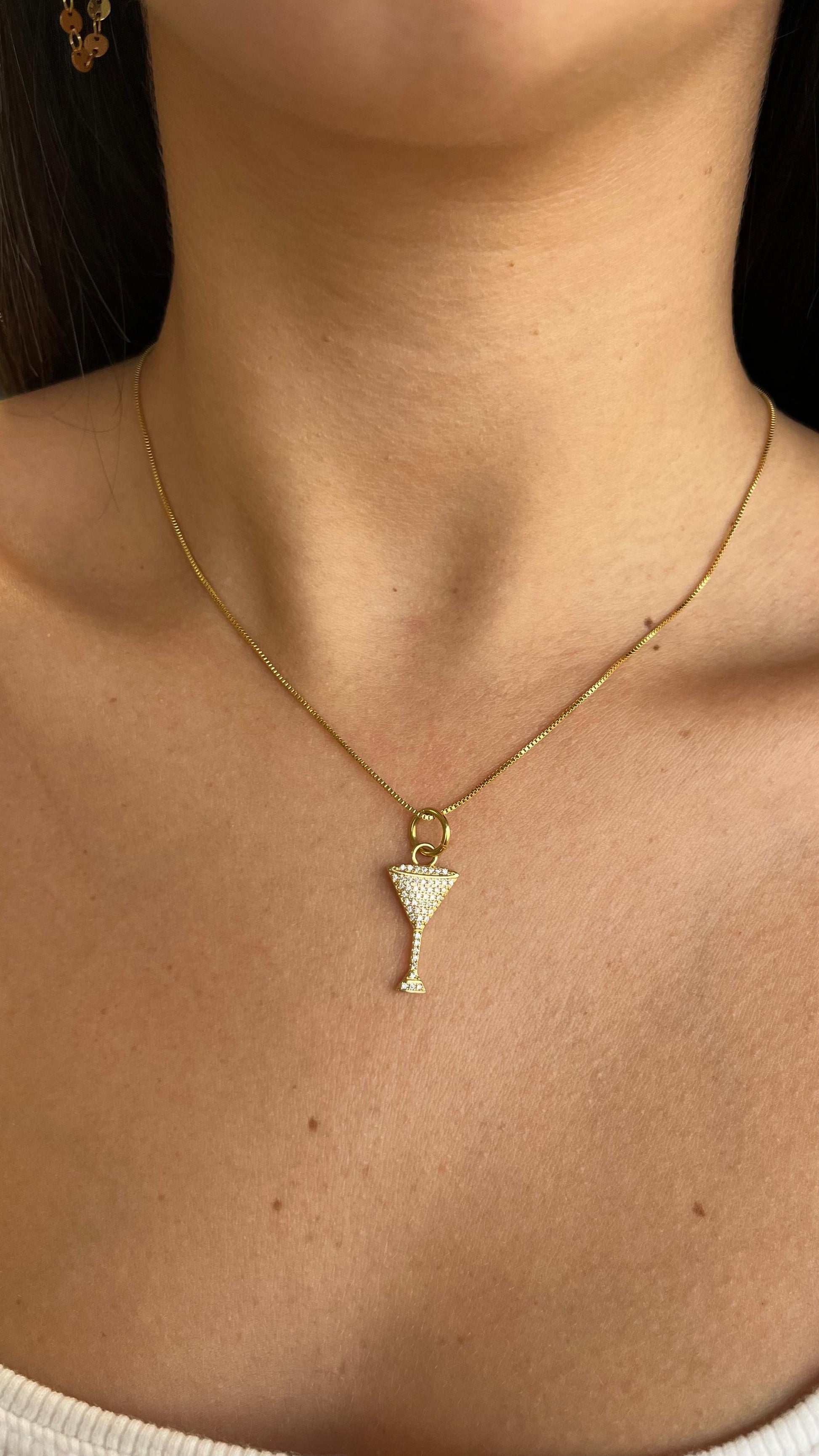 O Colar Martini é aquela peça que chama atenção na medida certa. Com pingente em formato de taça de martini totalmente cravejado em zircônias, ele traduz um visual moderno, cool e cheio de personalidade.