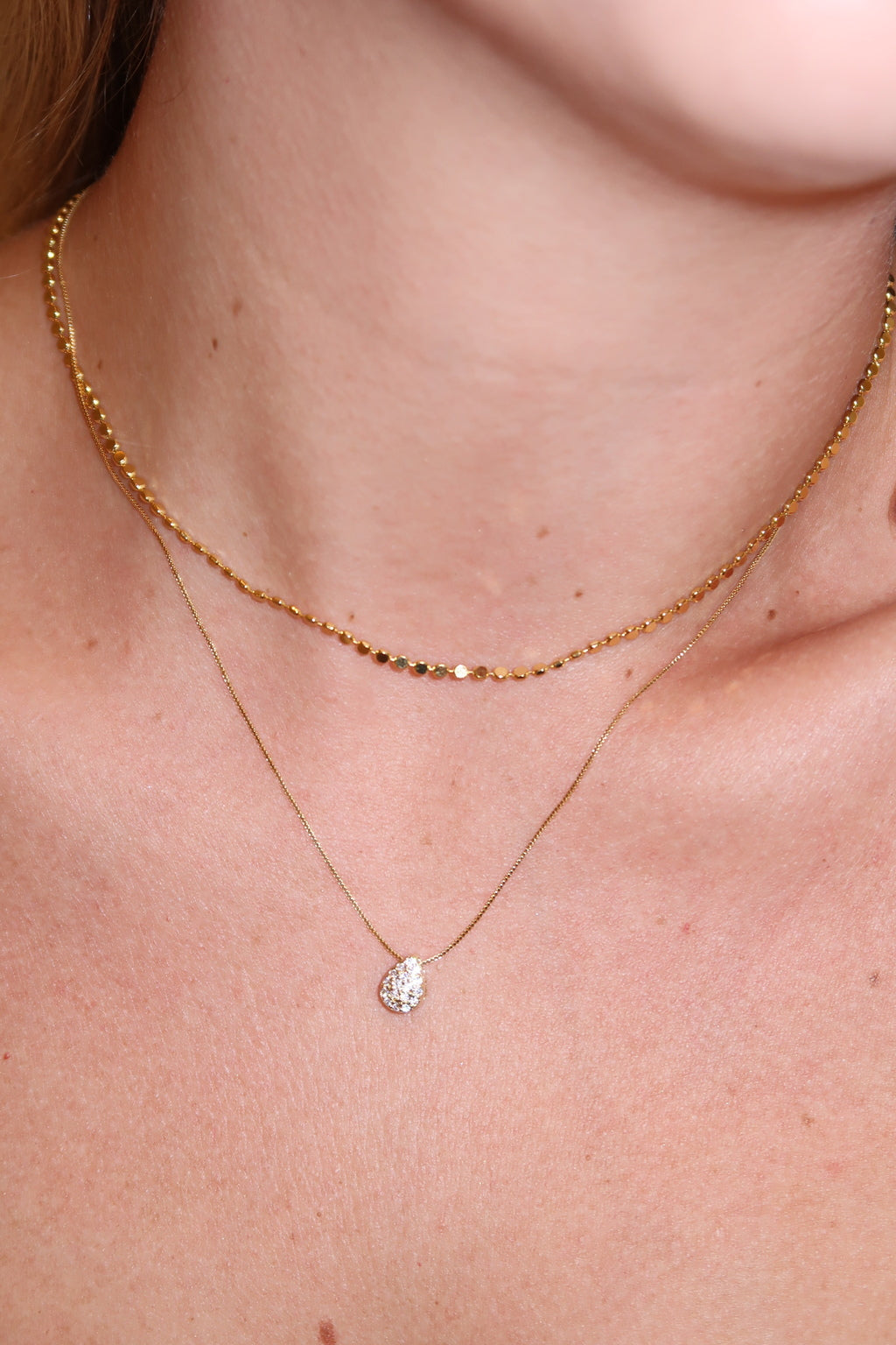 Uma joia delicada e sofisticada, este colar apresenta um elegante pingente em formato de gota, ricamente cravejado com zircônias cintilantes. Com acabamento impecável e brilho deslumbrante, é a escolha perfeita para quem aprecia um estilo clássico e atemporal. Versátil, pode ser usado sozinho para um look sofisticado ou combinado em um mix de colares para composições modernas e elegantes. Uma peça eterna para valorizar qualquer produção!