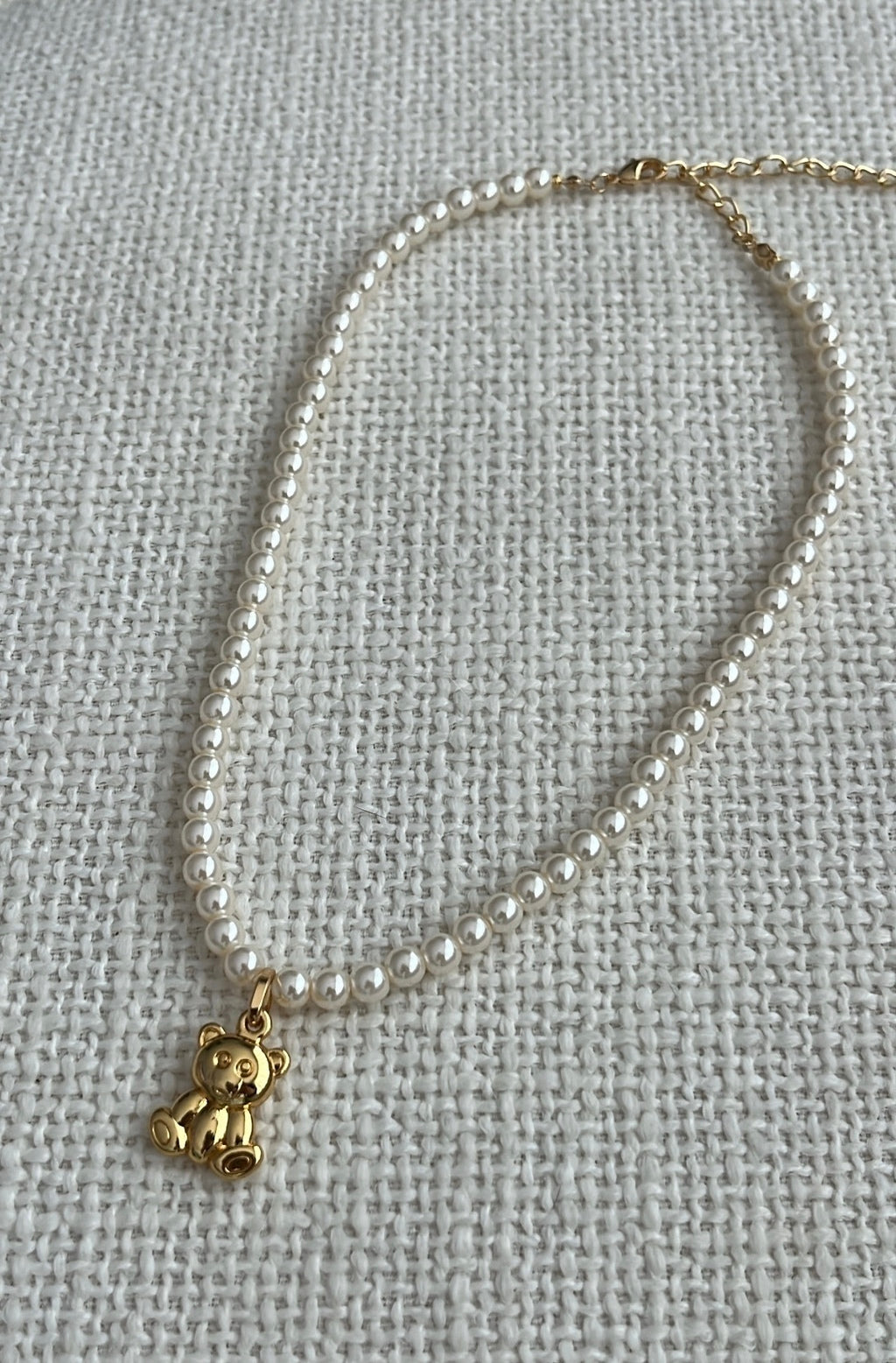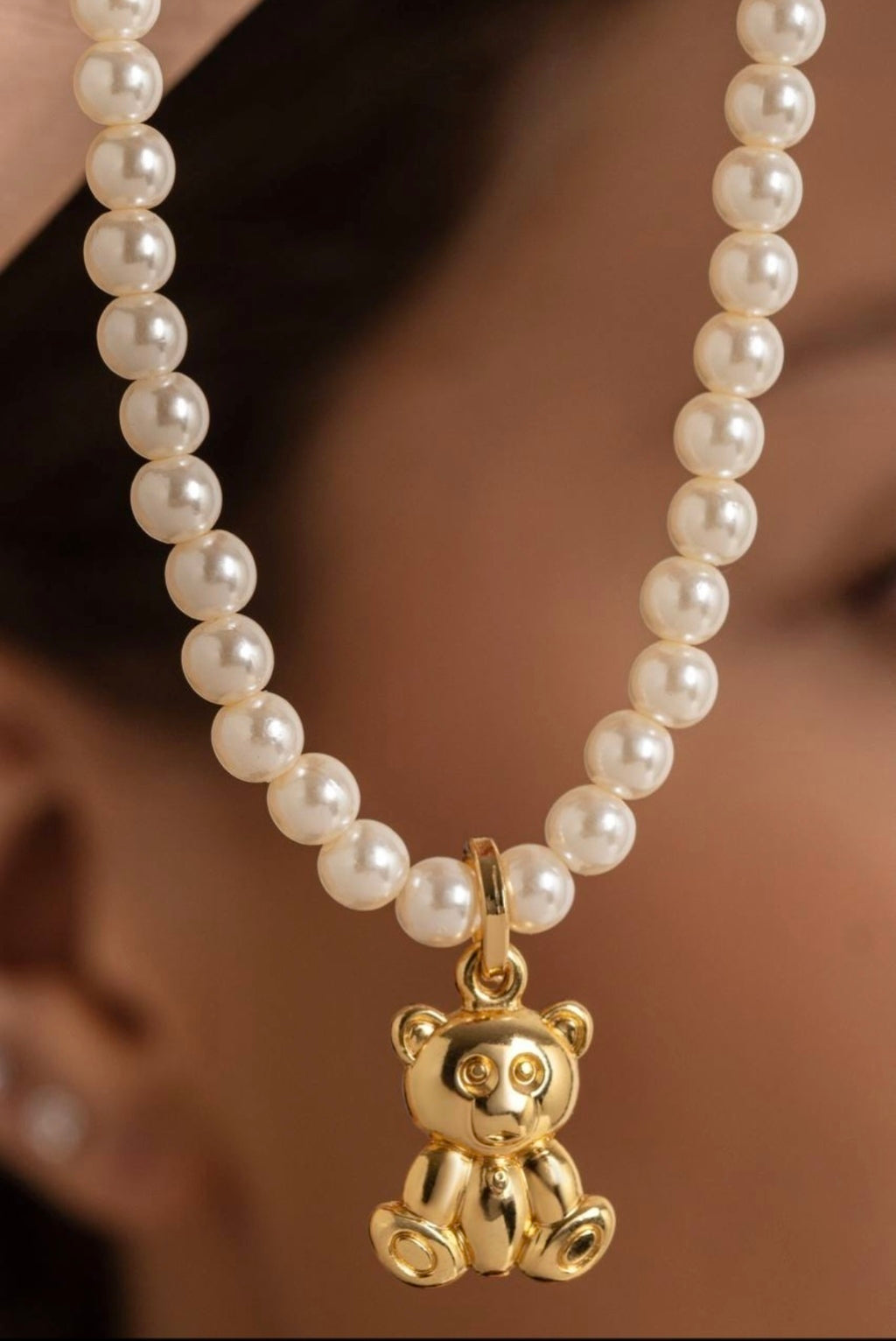 Adicione um toque de modernidade e diversão ao seu estilo com nosso colar em pérolas, adornado com um encantador pingente de ursinho dourado. Esta peça única combina a atemporalidade das pérolas com a jovialidade e o charme do pingente, criando um acessório que é tanto elegante quanto descolado. Ideal para quem gosta de inovar no visual sem perder a sofisticação, este colar é perfeito para diversas ocasiões, desde eventos casuais até momentos mais especiais. Uma escolha ousada e charmosa para realçar sua personalidade.