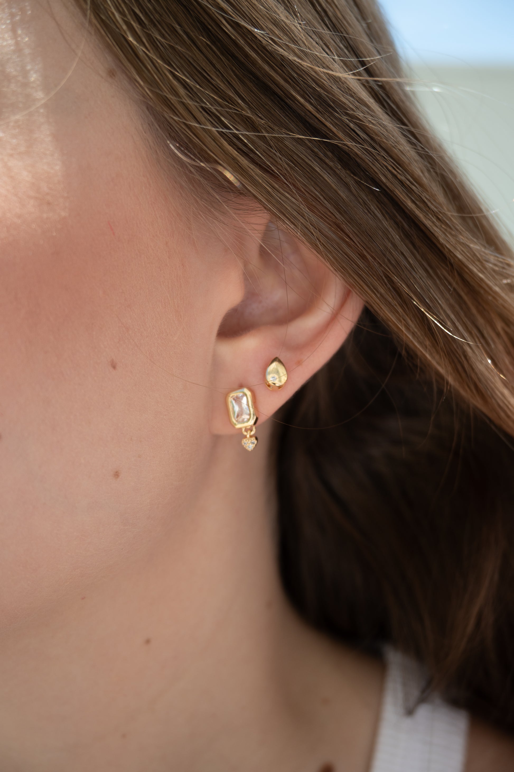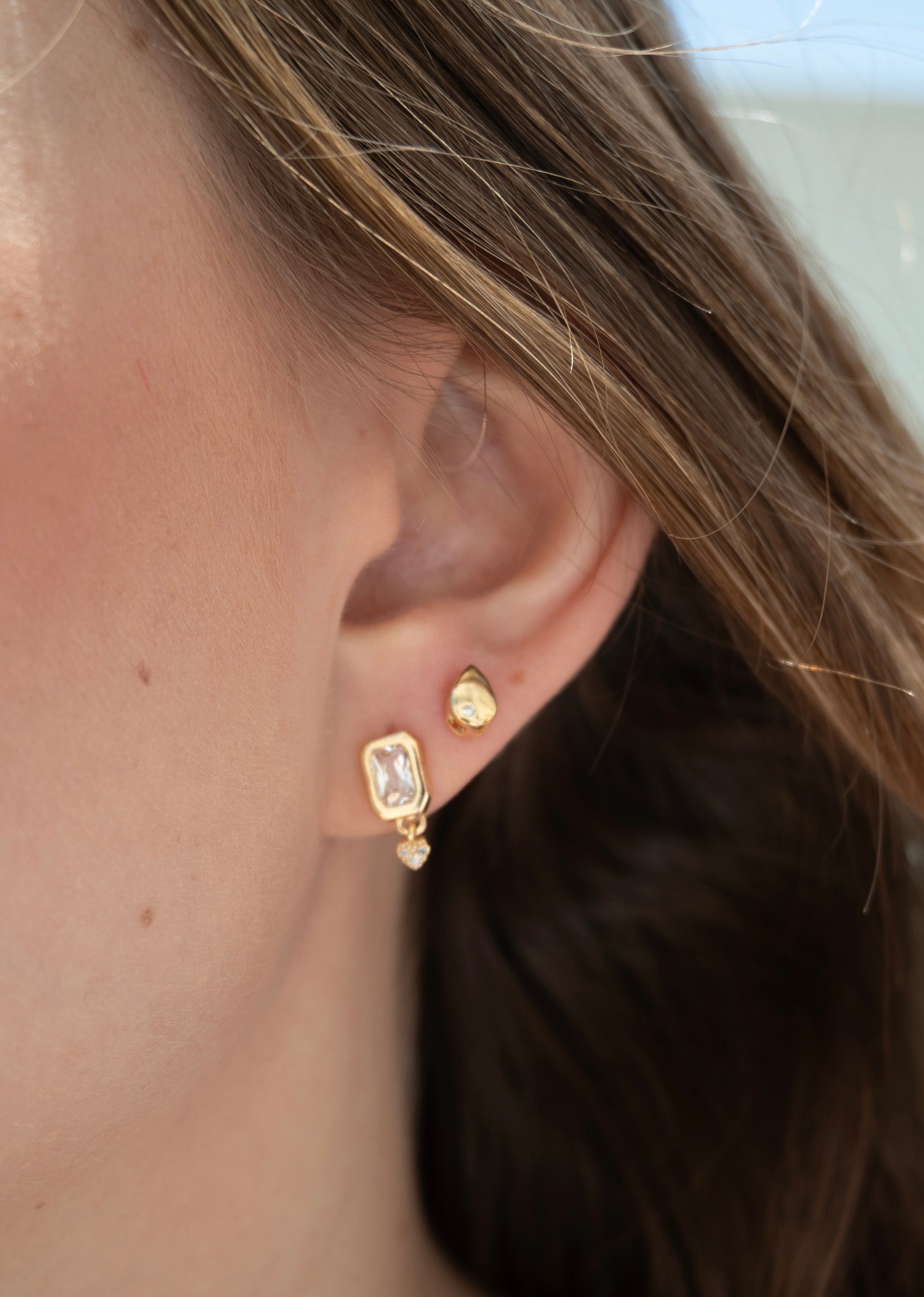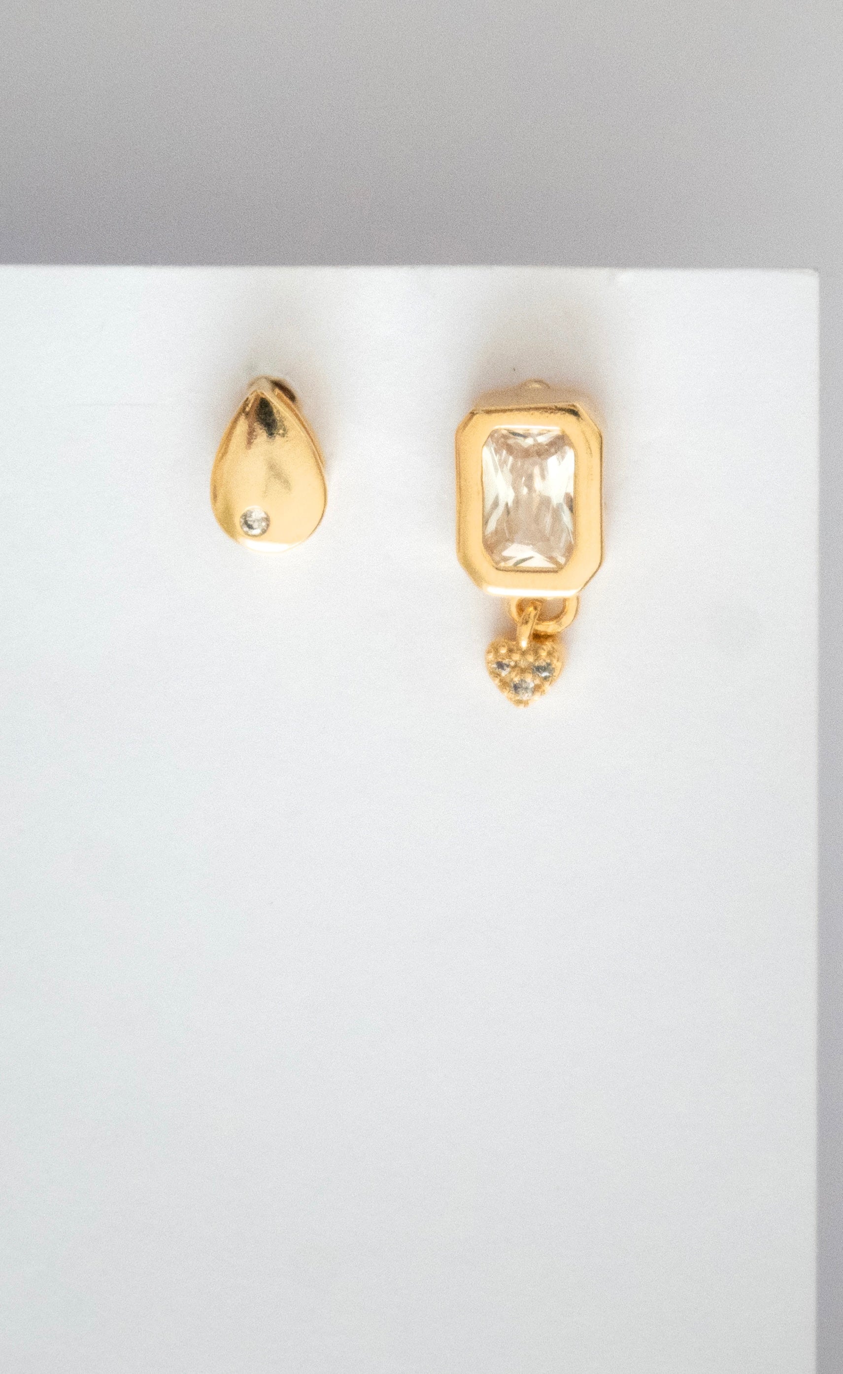 Dupla de brincos composta por um brinco clássico quadrado cravejado por uma zircônia e uma mini gota delicada e elegante. Um mix perfeito para quem tem um estilo básico, mas gosta de adicionar um toque de charme ao look.