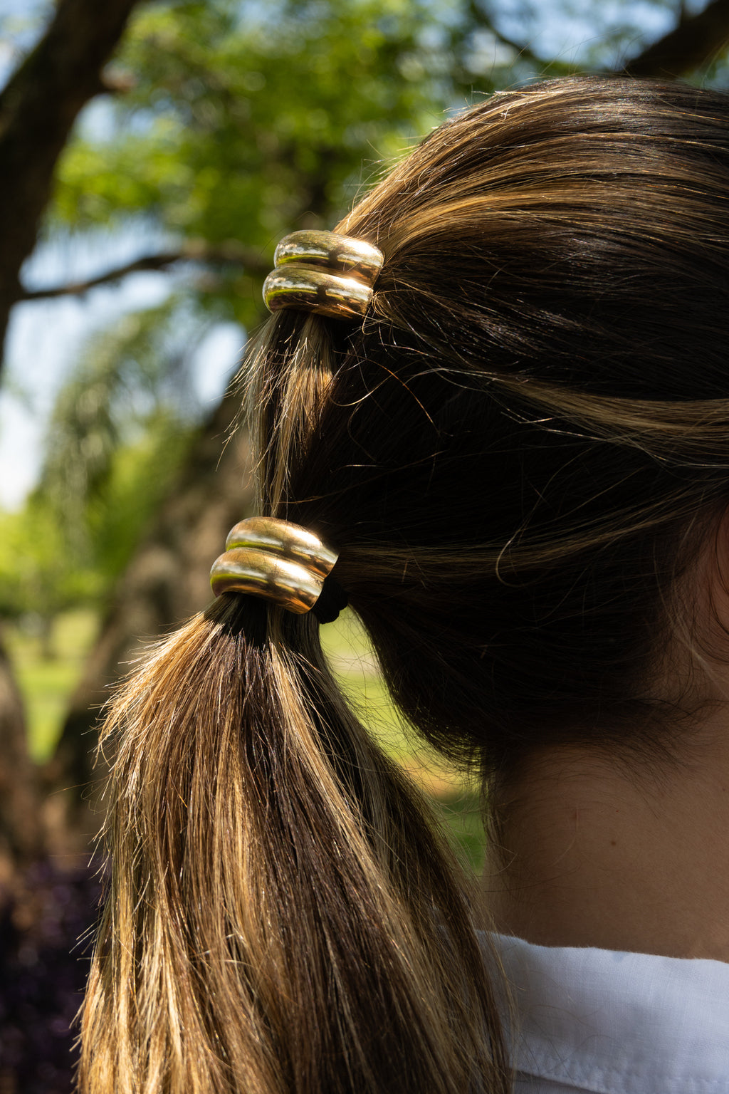Elástico de cabelo com detalhe em metal dourado, vendido em um kit com duas unidades. Ideal para criar diversos penteados, este acessório é moderno e sofisticado, trazendo um toque de elegância ao look. Com acessórios de cabelo super em alta, este elástico é perfeito para adicionar estilo e praticidade ao visual.