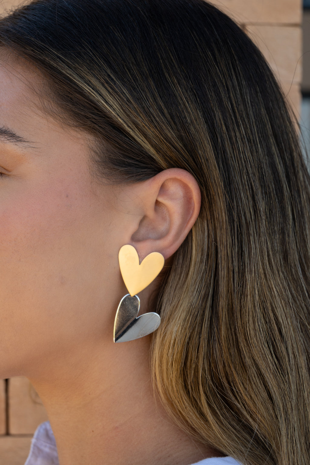 Maxi Brinco em formato de coração com banho duplo, onde o banho a ouro possui um acabamento acetinado que confere à peça um ar ainda mais sofisticado. Apesar de seu tamanho generoso, o brinco é surpreendentemente leve, proporcionando conforto durante o uso ao longo do dia. Com um design jovem e moderno, é a escolha ideal para quem busca um toque de sofisticação e ousadia em seu visual.