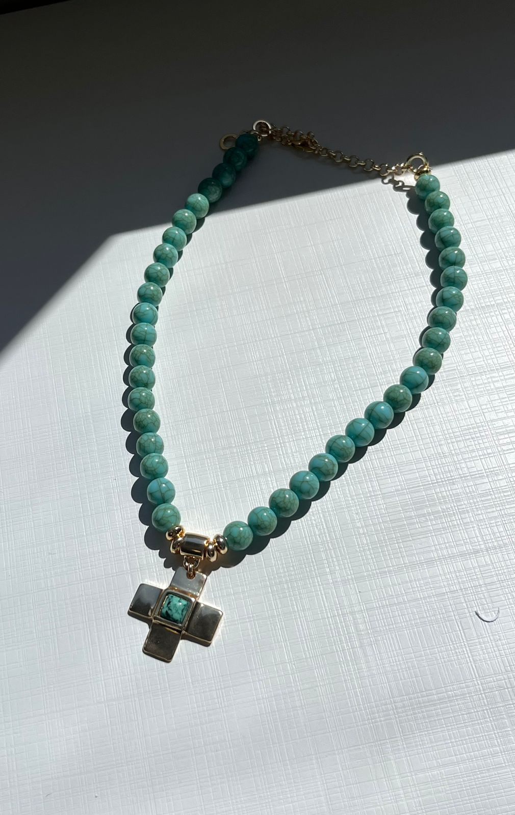 O Maxi Colar com Pedras em Turquesa e Pingente de Cruz é a escolha perfeita para quem busca um acessório moderno e cheio de personalidade. Com um design boho chic — estilo que está super em alta —, essa peça maximalista transforma qualquer look, trazendo elegância e autenticidade instantaneamente. As pedras em turquesa, combinadas ao pingente de cruz, criam uma composição marcante e sofisticada, ideal para quem gosta de valorizar o visual com acessórios que fazem toda a diferença.