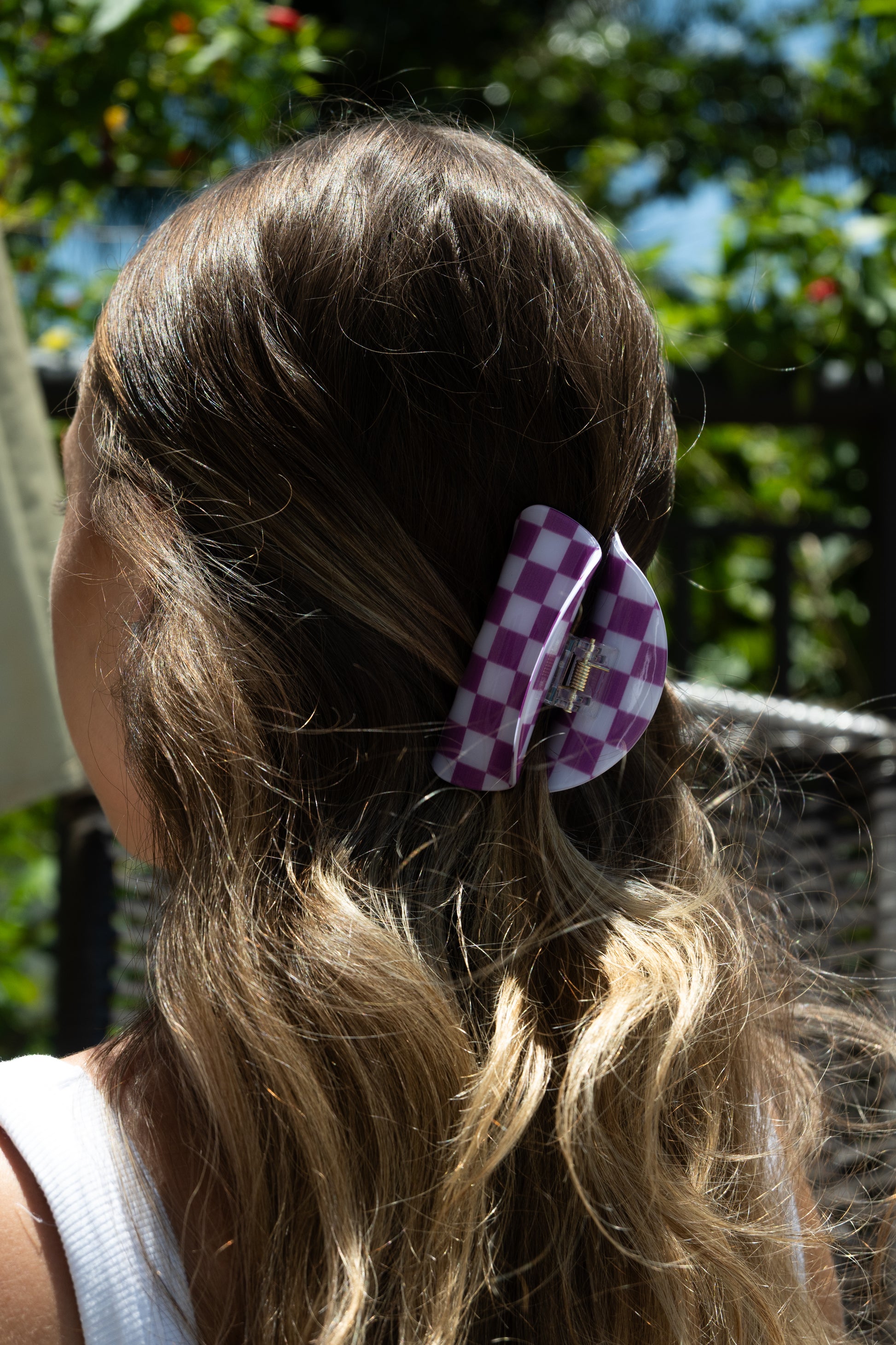 Presilha de cabelo em acetato com estampa quadriculada, trazendo um visual moderno, despojado e cheio de estilo. Perfeita para dar um toque diferente aos penteados do dia a dia — seja em um meio preso, coque ou finalização mais criativa. Leve, resistente e super estilosa, é a escolha ideal para quem ama acessórios marcantes que transformam qualquer look de forma prática e divertida.