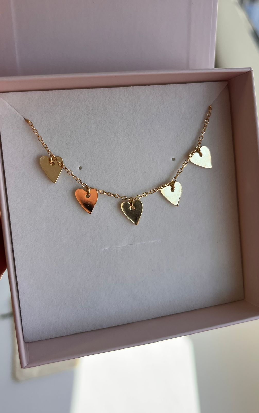 Pulseira com pingentes delicados de corações, um modelo elegante e versátil que combina perfeitamente com qualquer ocasião. Ideal para usar sozinha como destaque ou para criar um mix moderno com outras pulseiras.