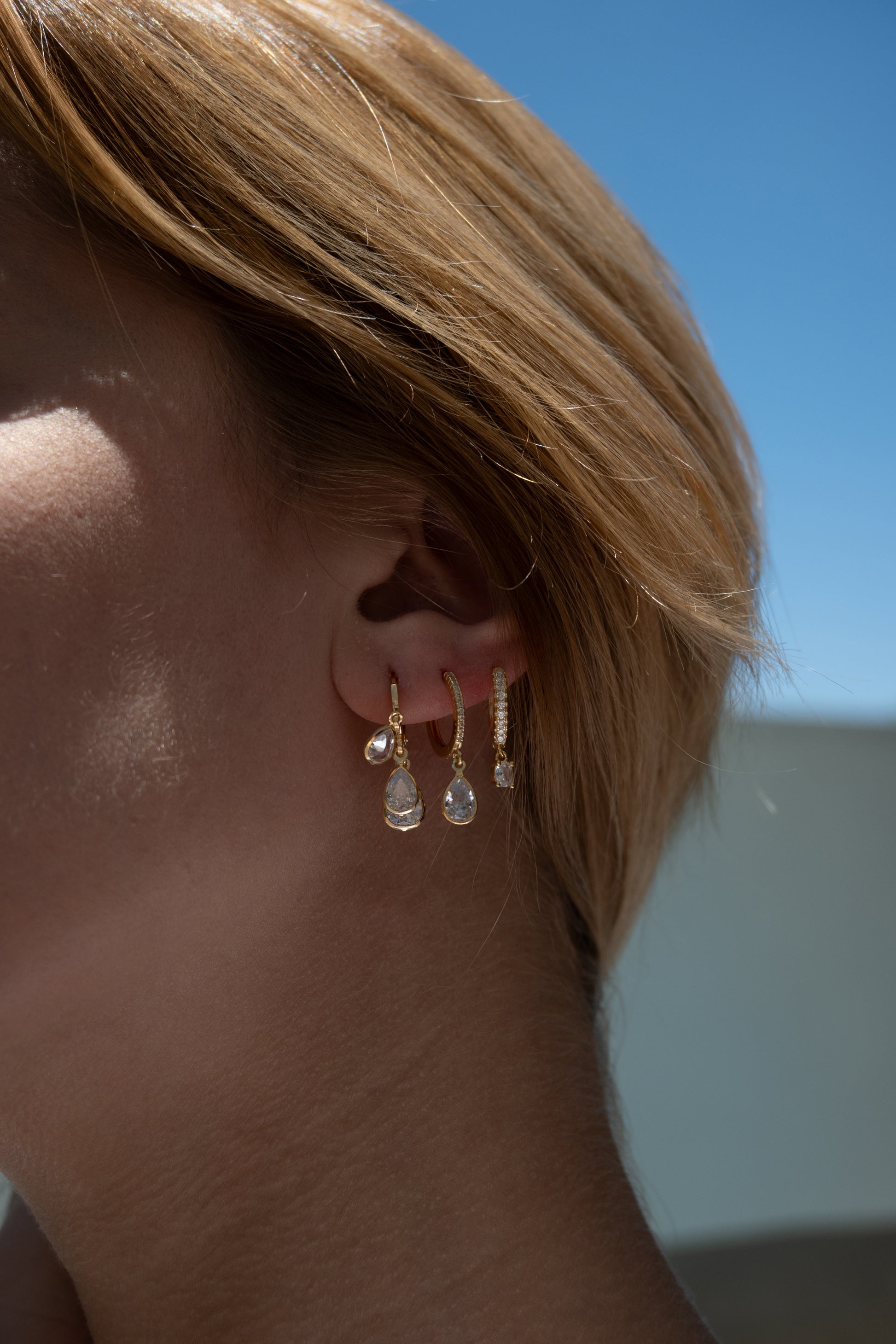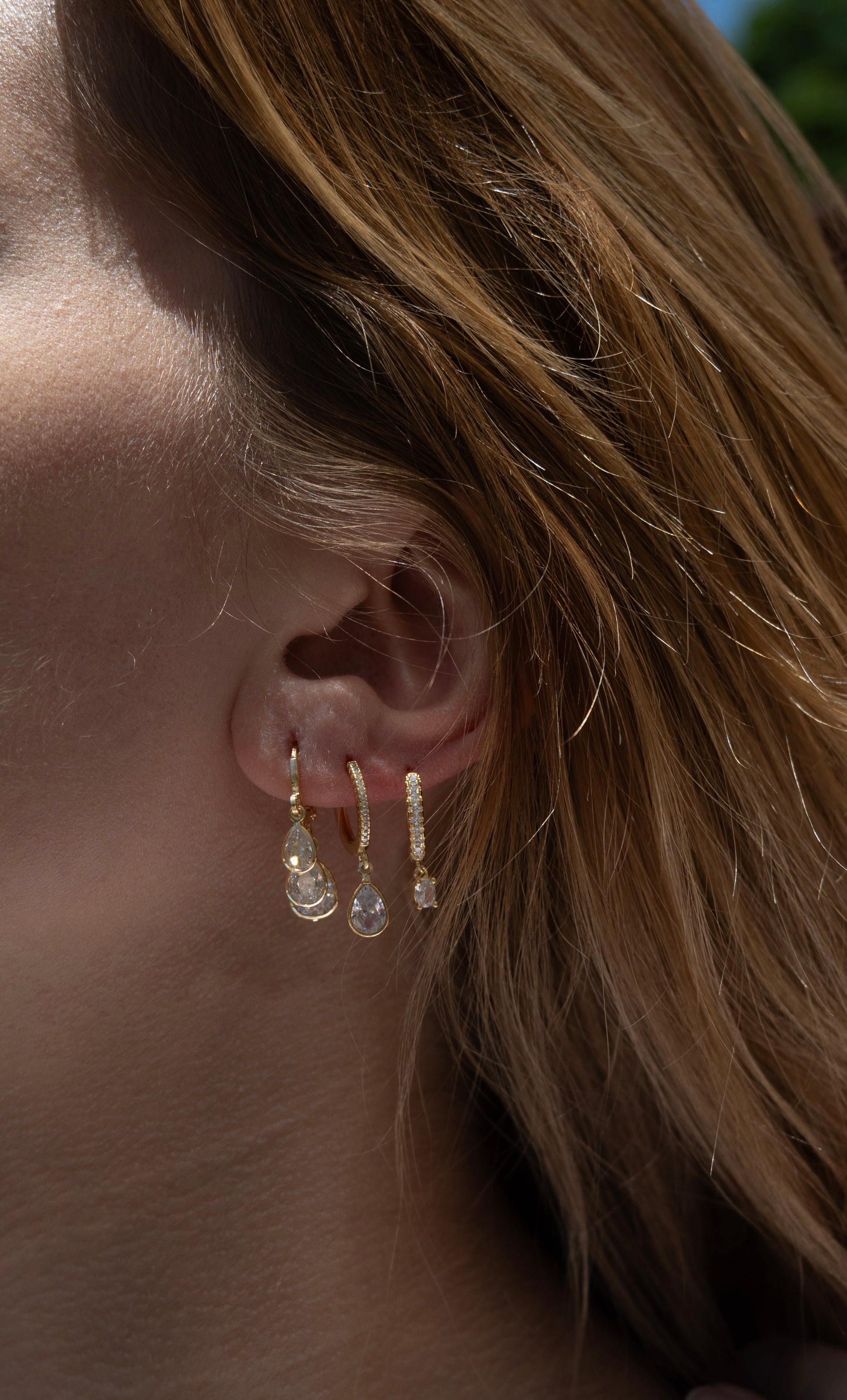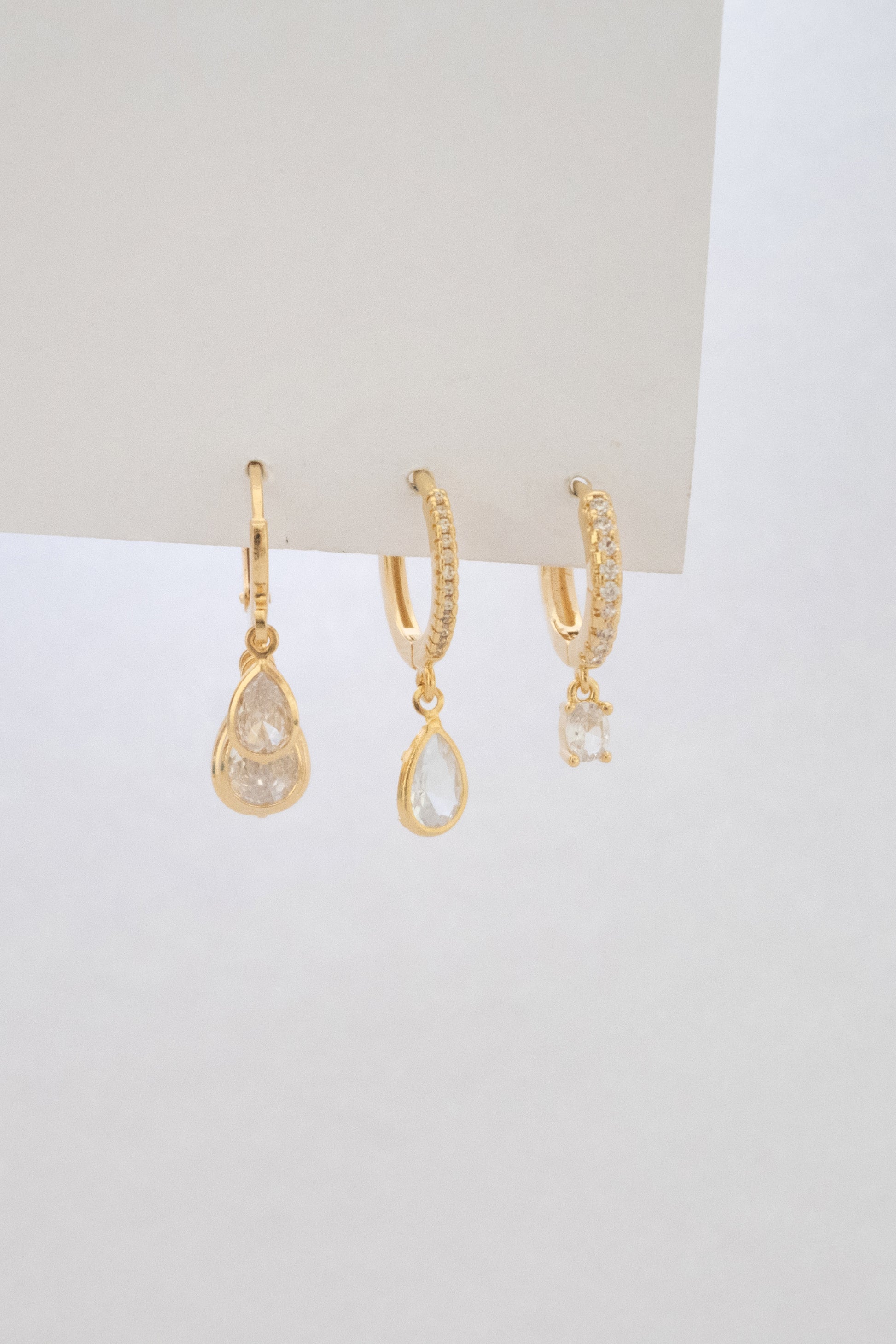 Trio de argolinhas cravejadas com pingentes em zircônia. Perfeito para quem ama fazer mixes de brincos! O trio é super confortável, estiloso e tão leve que você não vai querer tirar da orelha.