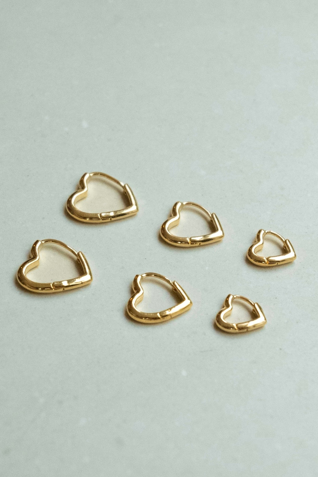 Trio de Argolas em Formato de Coração, um kit com três argolas perfeito para o primeiro, segundo e terceiro furo. Cada argola é delicadamente moldada em formato de coração, adicionando um toque de romance ao seu visual.